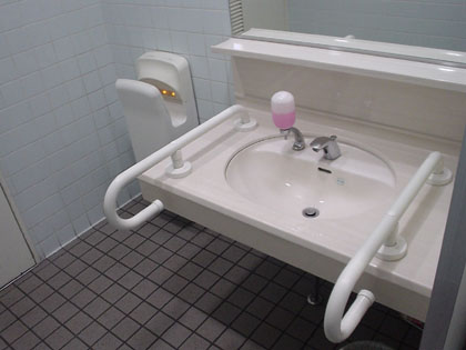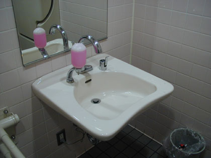 多目的トイレの洗面台にも液体石鹸がついています。