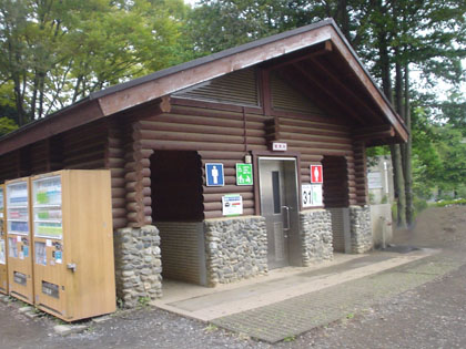 トイレ横の自動販売機の外装が、“こどもの森”に配慮した木製な感じですな。