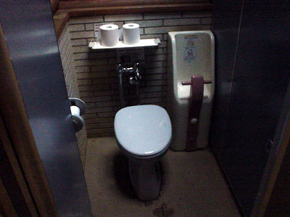 見た目そう悪くない感じのトイレですが、林の中にあるので日中でもちょっと薄暗かったりします。