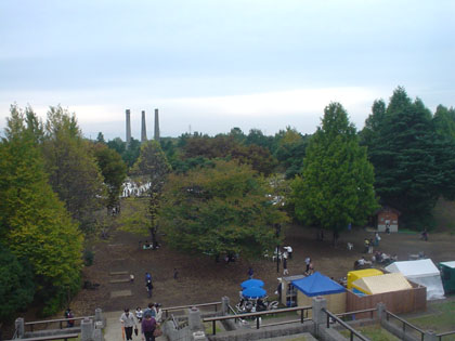 広場の二箇所からもうもうと辺りに垂れ込んで、