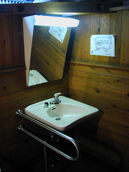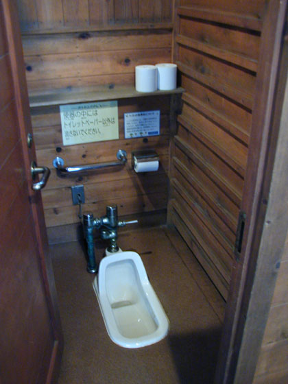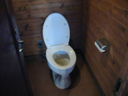 入り口で靴を脱ぐため、トイレの床が綺麗なことと、森の中にある山小屋の雰囲気、なんとなく木材の匂いのするトイレという点だけが利点。