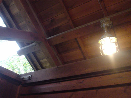 個室トイレにぶら下がる照明も山小屋風味な感じのトイレです。