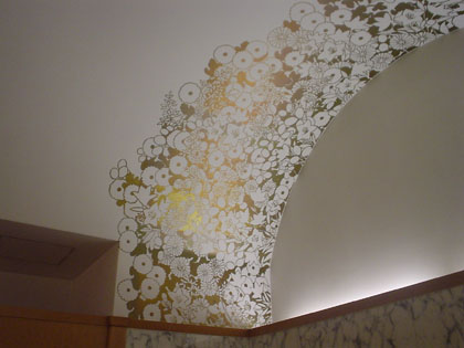 2階の小用トイレの天井には金ピカのお花のデザイン。