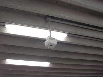 この入り口そばの天井に設置されているセンサーが人を感知して行います。