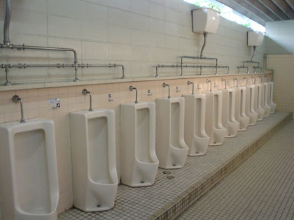 小用トイレがズラリと“L”字型に並ぶ様はなかなかの壮観さです。
