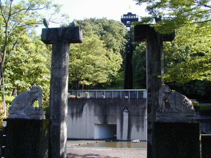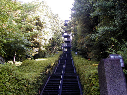 上の写真は公園の山の上に立つ展望台に至る階段。