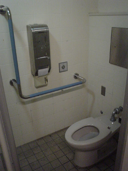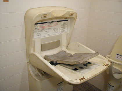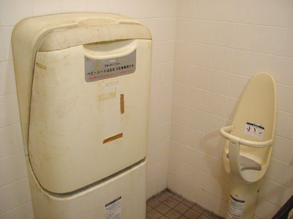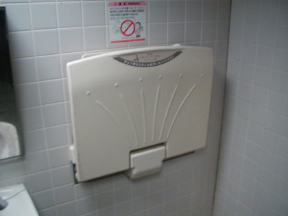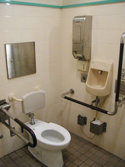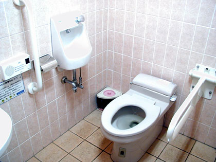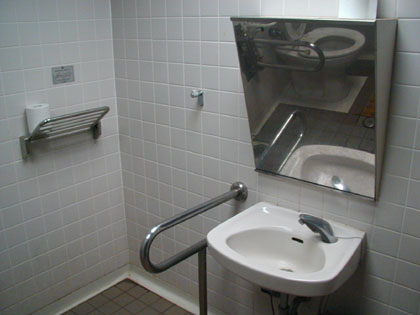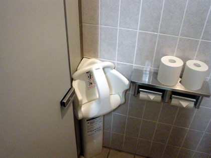 白い便器だけが真新しく輝く多目的トイレです。たぶんここのトイレは酷使されているのでしょうね。