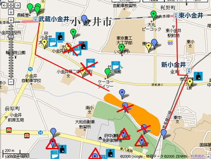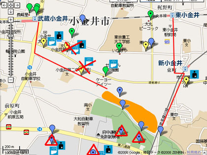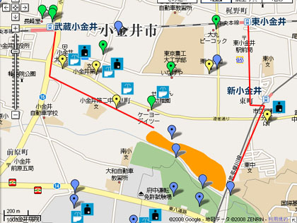 武蔵小金井駅からのルート沿いにある