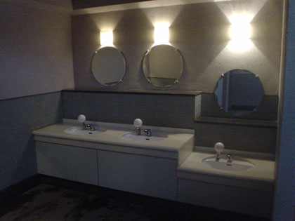 間接照明に丸鏡がそこそこなお洒落感を以て利用者を迎えてくれるからです。