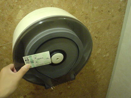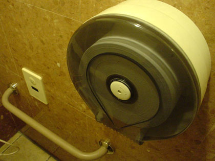 場外馬券場のトイレットペーパーホルダーのデカさです。