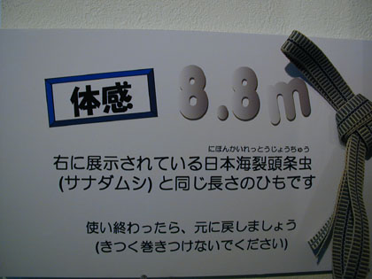 サナダムシさんと同じ長さがありまして、ビローンと伸ばしてカップルに大人気の体感コーナーとなっていました。