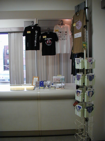 寄生虫Tシャツや寄生虫ポストカード、本物の寄生虫を使った携帯ストラップなどの販売コーナーもあったりします。