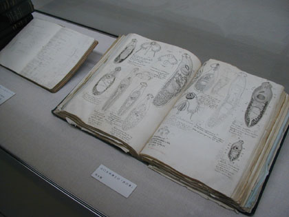 館内には寄生虫の標本のほか貴重な研究ノートも展示されていて、