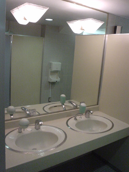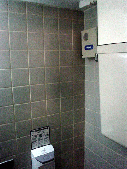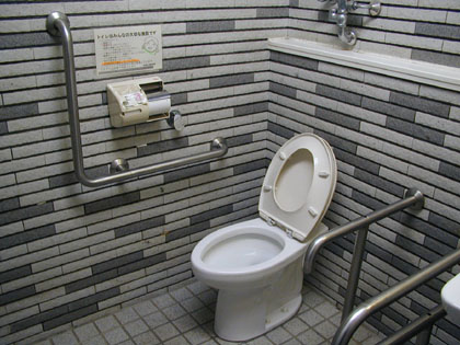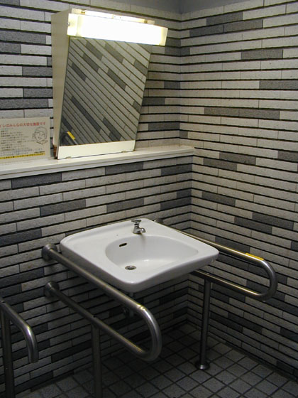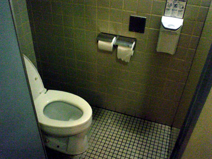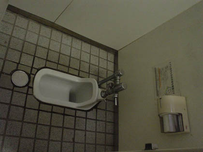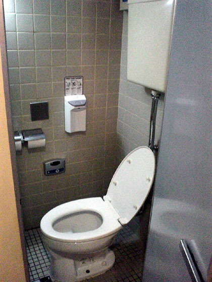 さっきも言いましたがこのセンサーはムチャクチャ感度が良いので、体を逸らしたり、足や膝をセンサー部から遠ざけても回避不能で鳴り続けますので、こう いった音が気になる人はこのトイレの利用はツライかもしれません。まぁリックドム13機が全滅するより短い時間を我慢すれば、音もそれ以上は鳴りませんの でイヤな人は我慢してください。どうしてもという人は、南側の階段横にある地下1階および4~7階(3階は女性用のみ)のトイレを利用するといいです