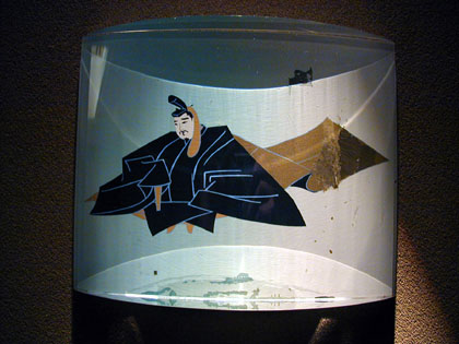 男性用を示すトイレのシンボルマークはまるで百人一首の絵札風味です。