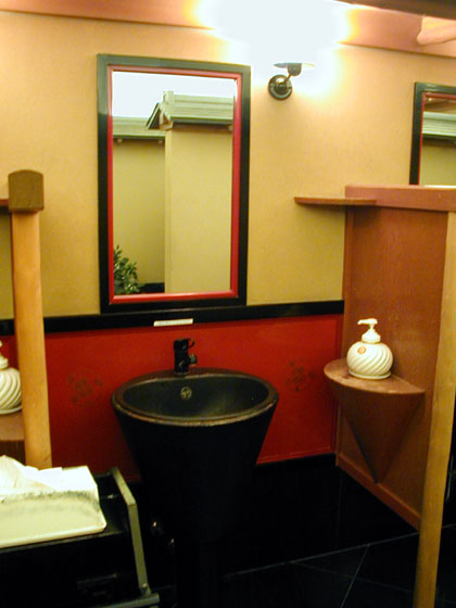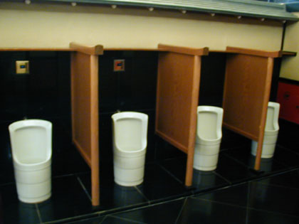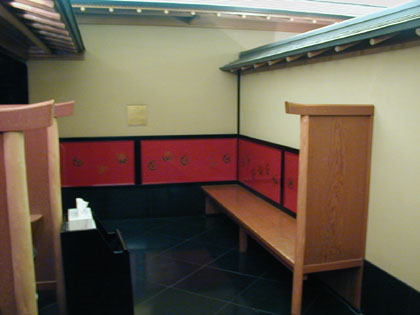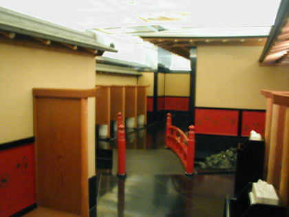 昨日紹介した目黒雅叙園の再現化粧室もそうですが、なんか江戸とかを意識した場所や建物にあるトイレに、桶型の小用トイレがよく置いてあるような気がします。例えばお台場の「大江戸温泉物語」なんかもそうでしたしね。