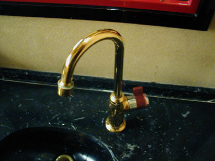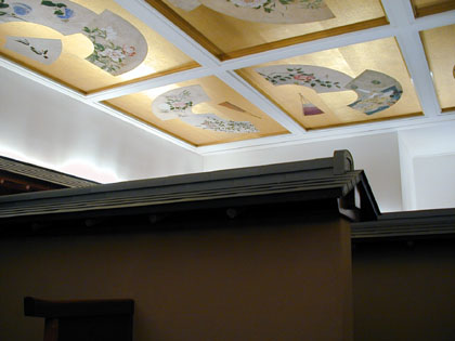 トイレの天井はとてもとても高く、ご覧の通りの扇が描かれた金色貼りです。