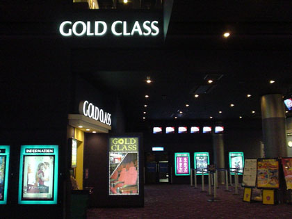 「GOLD CLASS」の看板の場所は、映画代に+500円で入れる専用ラウンジの入り口です。