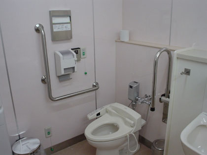 シャワートイレ:○ オストメイト:○ 石鹸:○ エアータオル:○ 便座シート:○ オムツ台:○ 音姫:○ 緊急ボタン:○