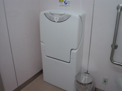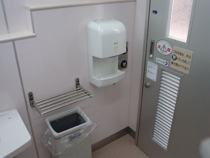 多目的トイレの中にも洗面台とエアータオルが用意され、