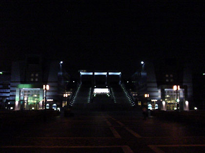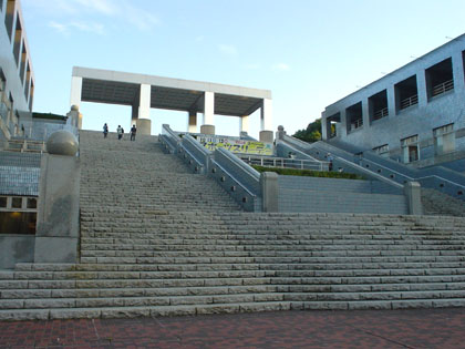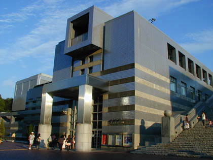 神殿風味の大階段を要する公共施設「パルテノン多摩」です。
