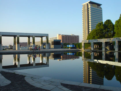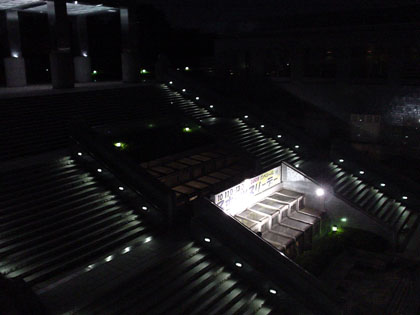 多摩中央公園の入り口はこの大階段の上にあたるパルテノン多摩の5階のほか、