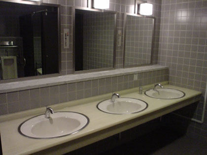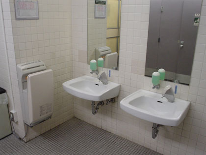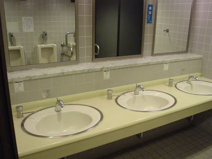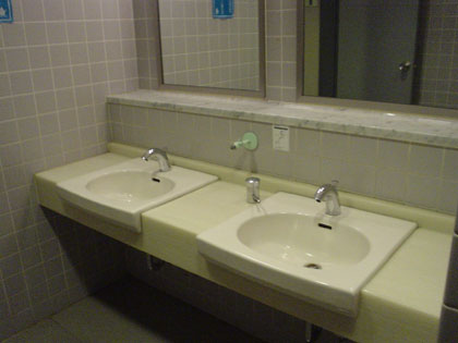 複数ある洗面台のうち、石鹸を射出する装備がついているのは1つだけです。
