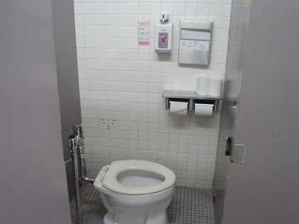 まずは上の写真「4階西側廊下」奥の右側、多摩中央公園への出入り口にもっとも近いトイレの様子です。