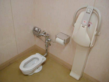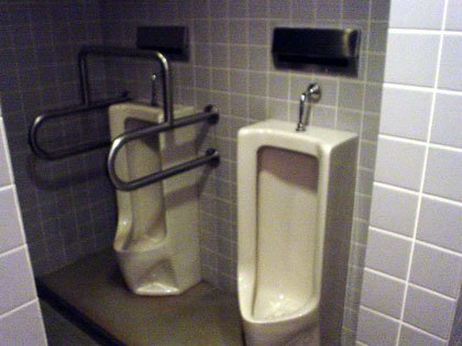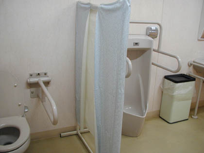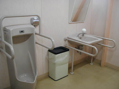 多目的トイレには洋式便器のほかに手すりつきの小用便器が置いてあります。