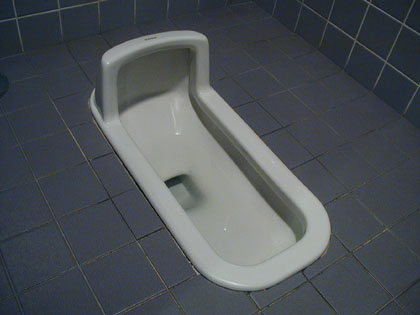 私も小さな子供の頃、このタイプの小用トイレで用を足すときはつま先立ち、プルプル足を引きつりながら必死に背伸びなんかしたもんですよ。