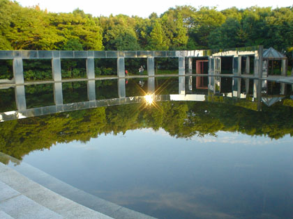 階段を登ったその屋上には水を湛えた大きな池と、それを取り囲む柱があります。