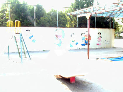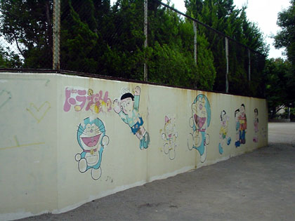 広場と遊具場を隔てる防球の壁をよく見ると、