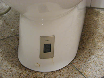 ちなみに便器の下に見える黒いセンサーは便器洗浄用のモノで、人が離れると水を自動で流します。