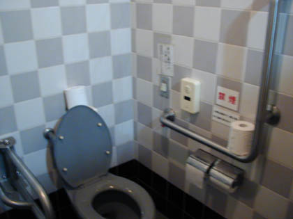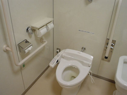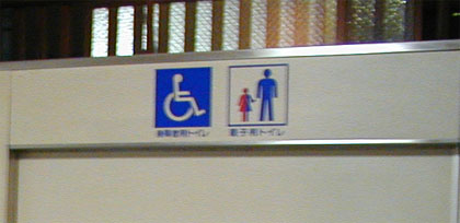 まぁ子供用の便座など、「親子トイレ」的な装備がなくても、親子がいっしょに入れるような広いスペースを持つ多目的トイレは、“子供のトイレの面倒を親ができます”からね。