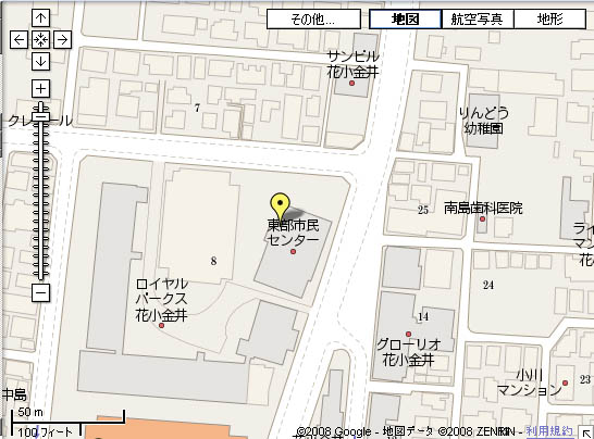 西武線 花小金井駅の北口からすぐのところにある公共施設です。