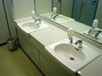 洗面台の水とオストメイトの蛇口から出る水は水道水。