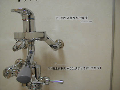 “雨水の再利用”の注意書きがあったとしても、“水道水”の表示がなければ、オストメイトの蛇口から出る水に直接触れて手を濡らしたり、その水で体を拭いたりしようとは思わないでしょうから、わざわざ両方の注意書きが書かれているのでしょうね。