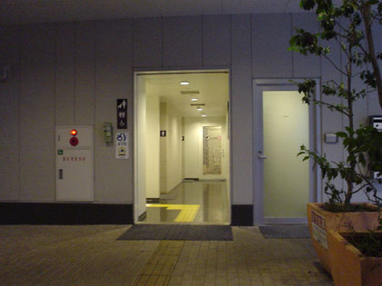 休憩スペースから見たトイレ入り口の様子です。