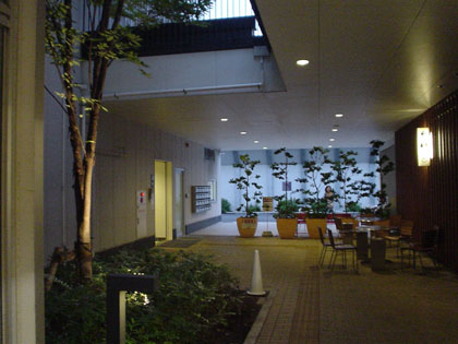 一階北にある休憩スペースとトイレ入り口(左)
