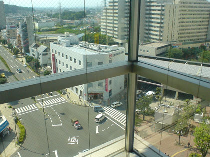 オーパ8階、エレベーターから臨む駅前交差点
