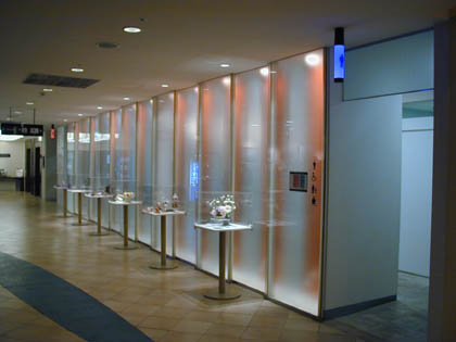 壁の表・廊下側に浮き出たシマウマ模様は、スモークガラス越しに浮き出た交互に並んだ鏡と柱のこの様子のようです。