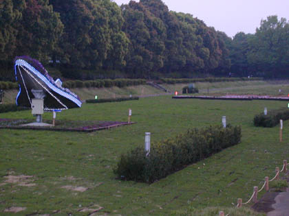 公園広場の裏手、木々の向こうに菖蒲園がありまして、