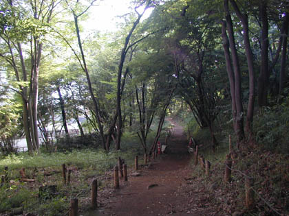 崖の下は雑木林と崖に沿って流れる小さなせせらぎ、