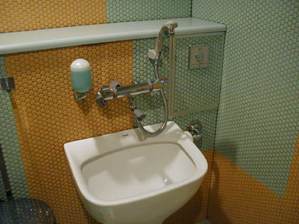 温水シャワーヘッド付のオストメイト専用便器があります。