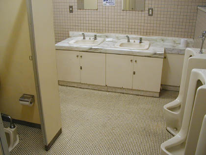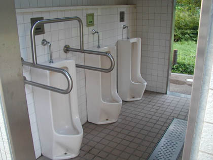男子トイレの扉は「中での犯罪を見逃さない」ための“外から中が窺える”、スイング式の扉を採用。