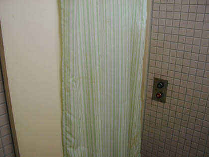 多目的トイレにはこういったドアを覆い隠すカーテンを用意しているところがあります。