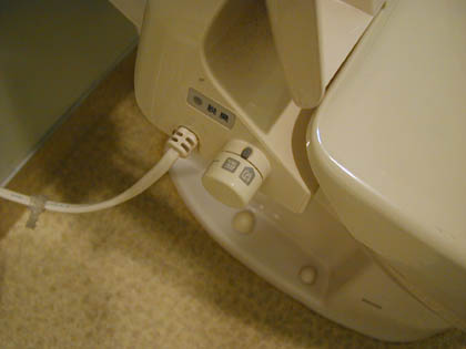 便座の左側に電源コードと温度調節用のツマミがあります。