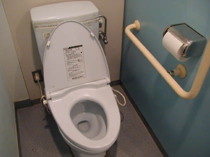 オムツ台やエアータオルがある多目的トイレの洋式便座をよく見ると、