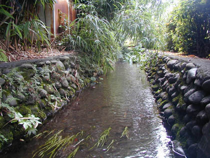 この写真の反対側では、この川の水で汚れを落とした野菜の直売所があります。