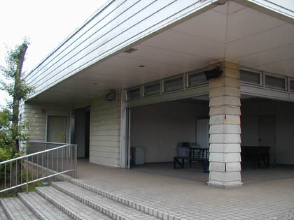 流域下水道処理場広場の休憩場(手前)とトイレ(奥)